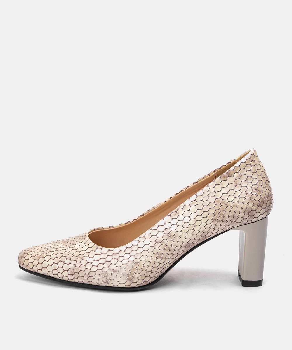کفش چرم زنانه مجلسی مدل 4200069- در دو رنگ مشکی و کرم- رویه این کفش از جنس چرم گاوی طرح خاویاری تولید شده و آستر داخلی آن از جنس چرم بزی می باشد. زیره این کفش از جنس داووس تولید شده و 5 سانتی متر پاشنه دارد. پشت این کفش باز است و با بند بسته می شود. طرح خاص این کفش موجب محبوبیت زیاد آن شده است.